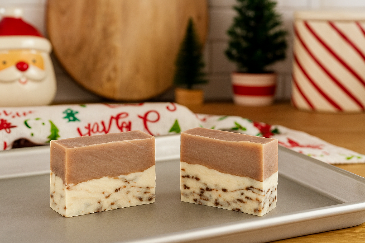Touch of sugar and spice with everything nice, this holiday themed soap is perfect for gifts. Notes of grandmother's cookies and a smattering of sprinkles help bring a smile to all.